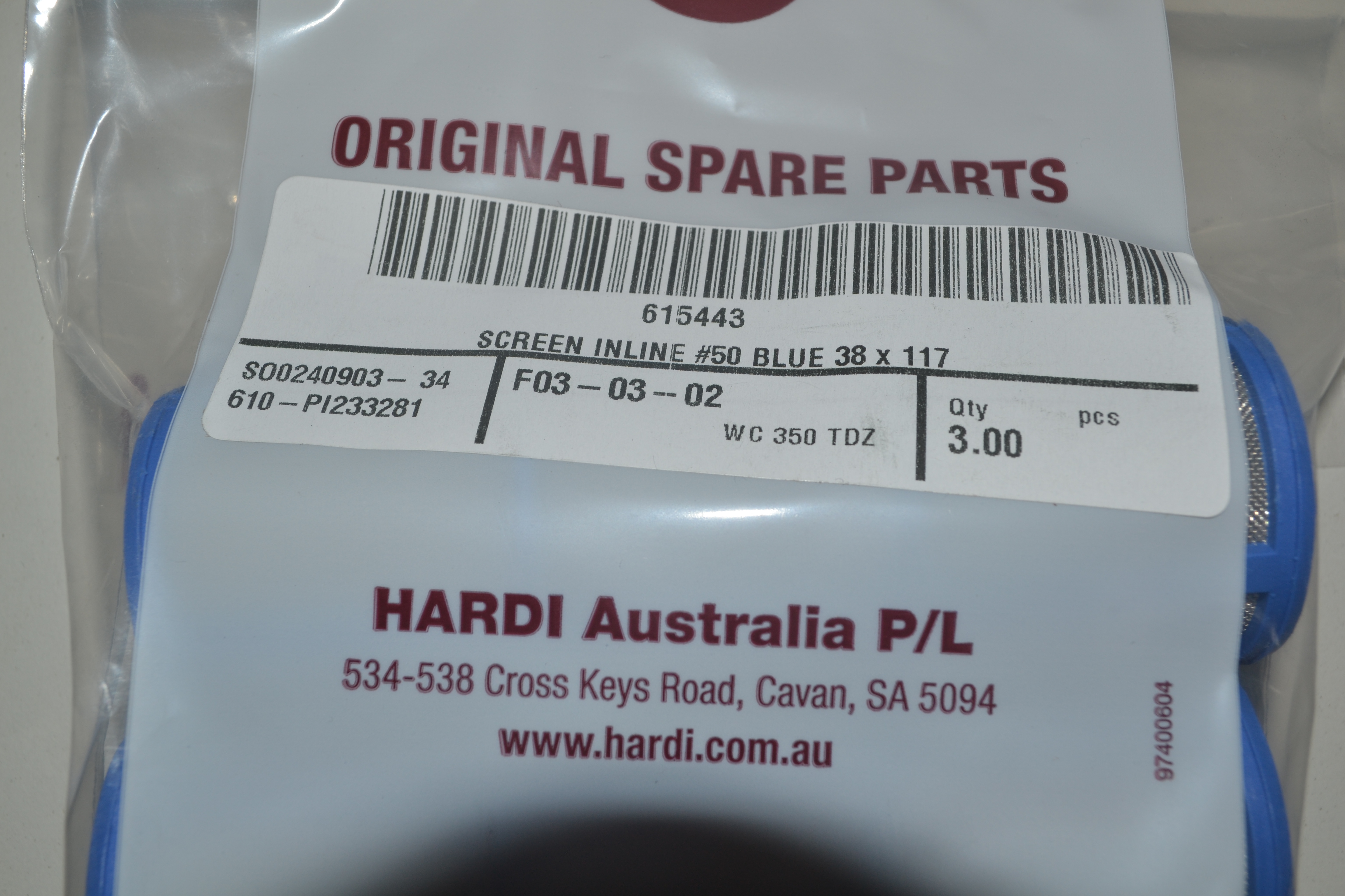 Hardi Filter In Line with 50 Mesh Element Blue W=38 , L=117